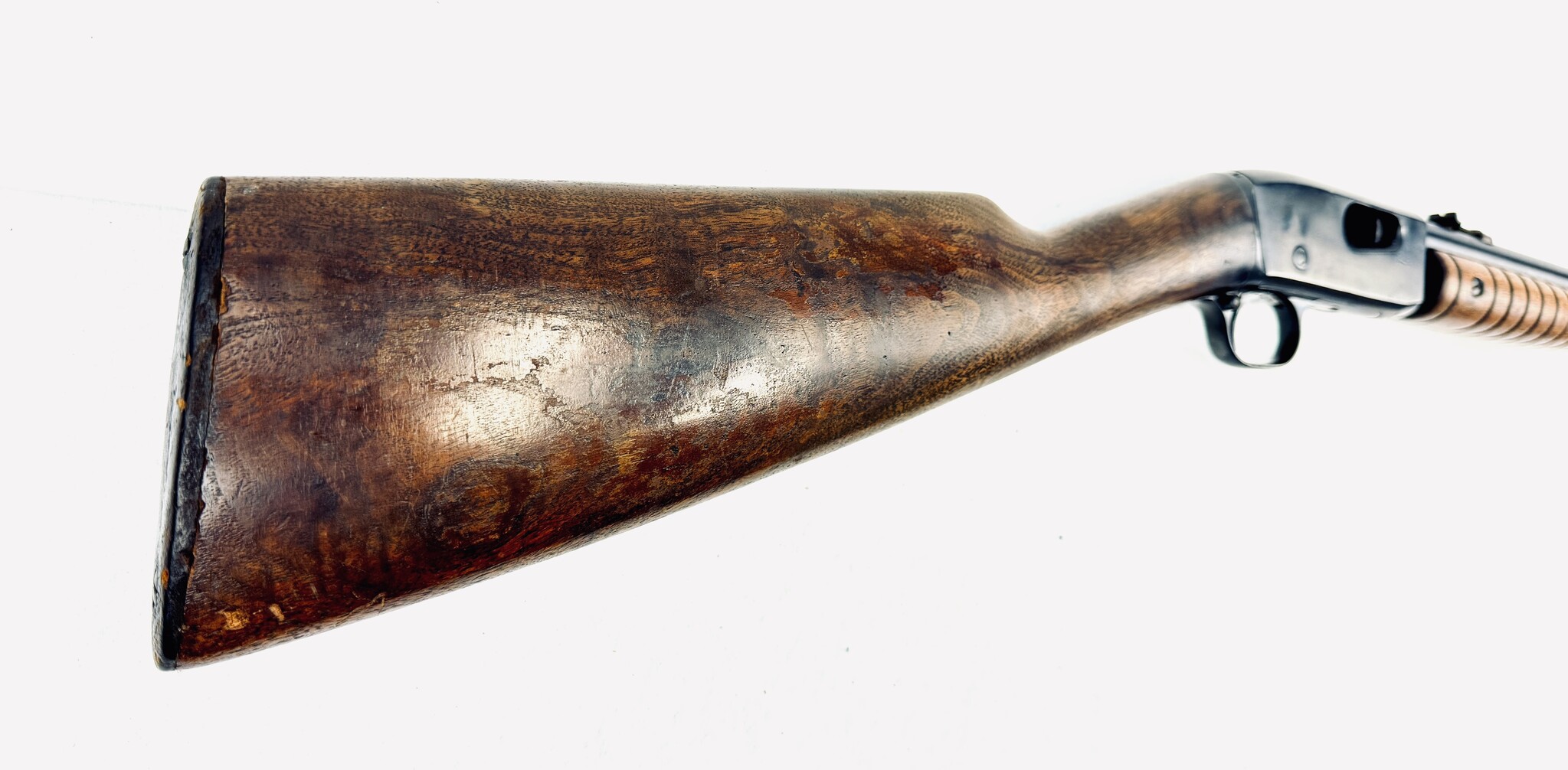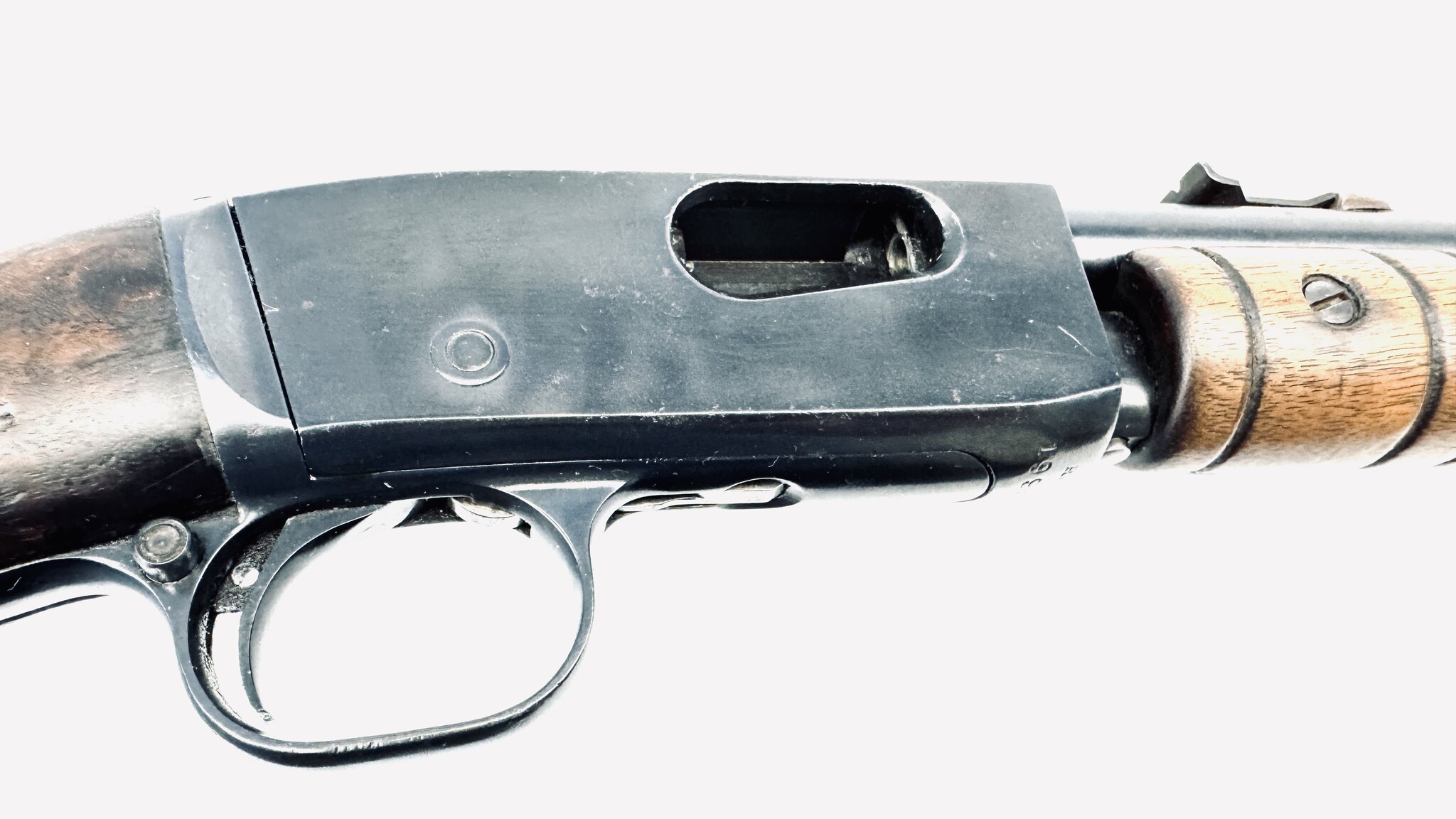 Model 12 was Remington's first successful pump-action .22 rifle. It featured a compact receiver and a tubular magazine. This fine example is in Good Condition.