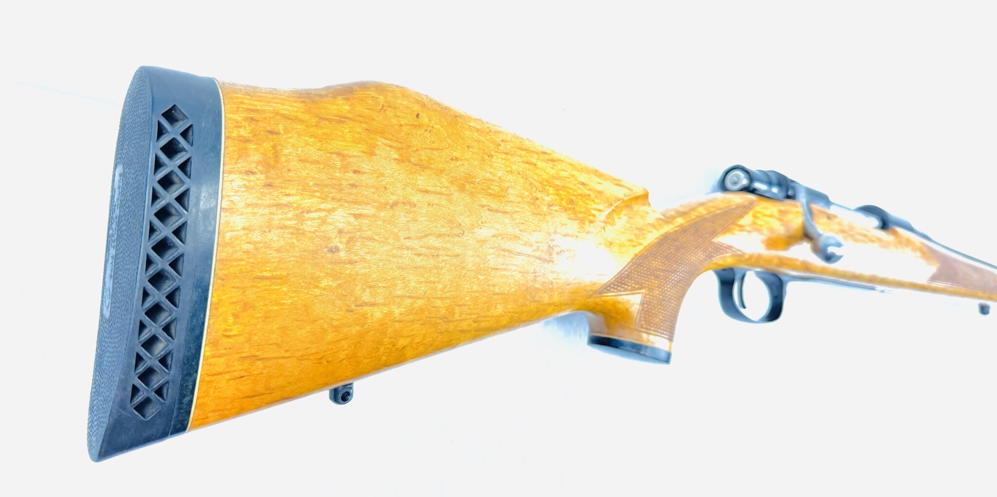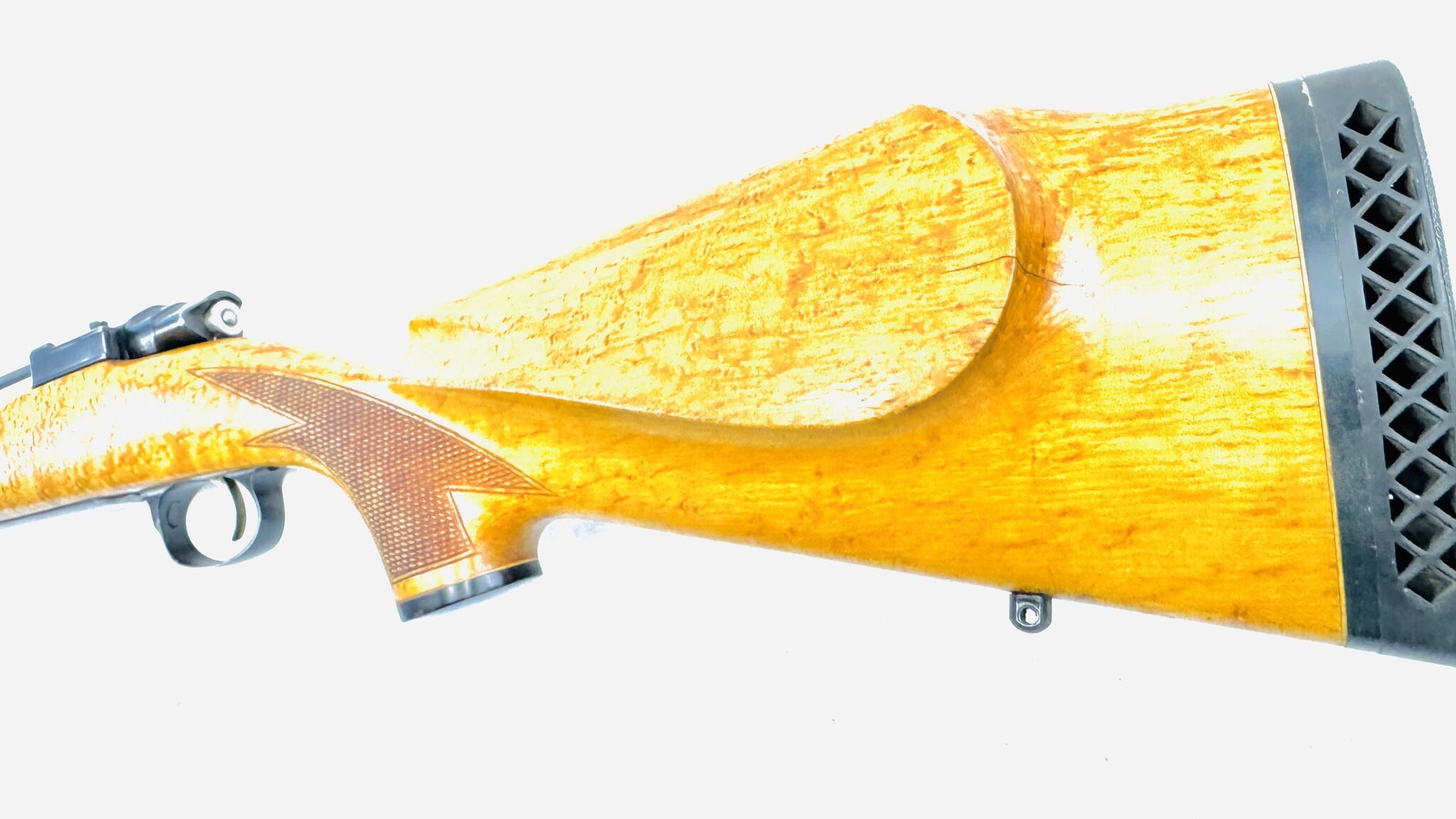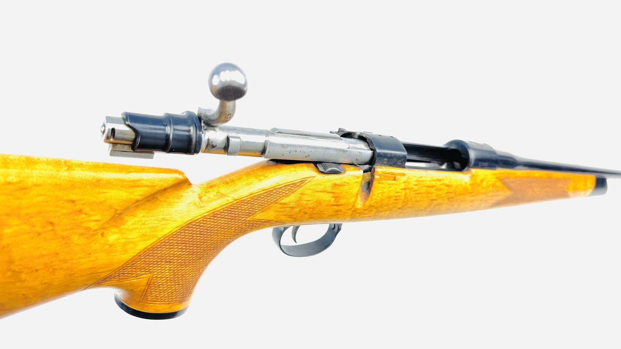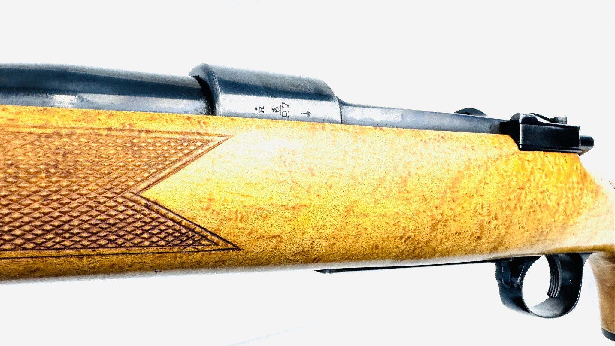 This Mauser rifle in .30-06 Sprg with a Bird's Eye Maple stock is a custom firearm, as this specific combination was not a standard factory offering from Mauser. This rifle is in Very Good Condition.