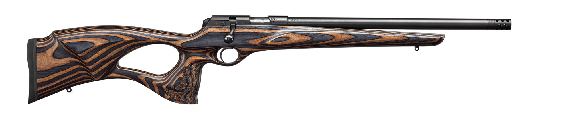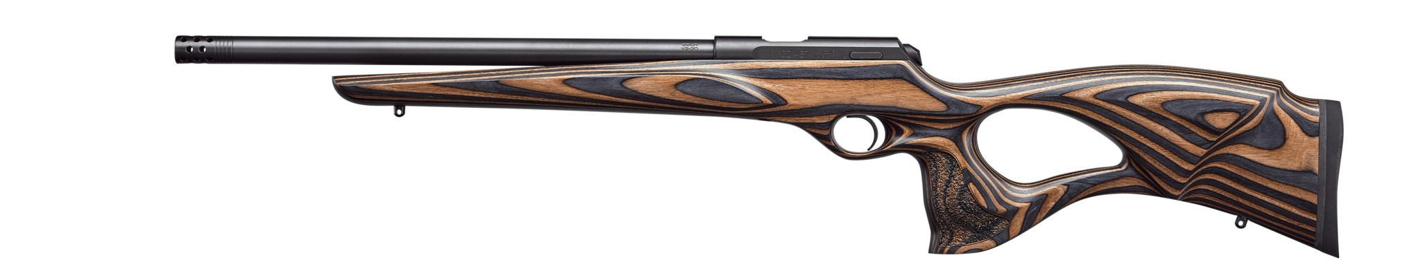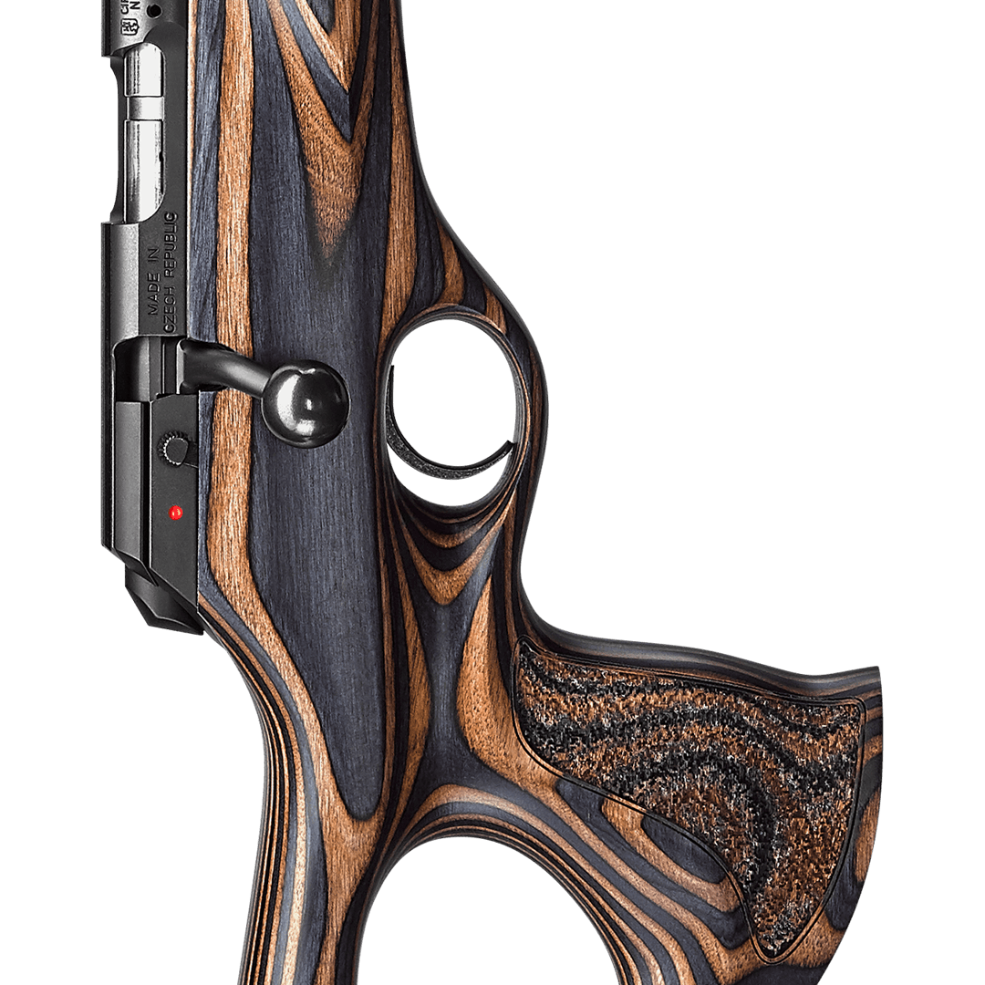 The perfect combination of ergonomics and elegance. Its thumbhole stock is made from high-strength laminated wood, with a unique integrated trigger guard. Its sophisticated design allows for comfortable use by both right- and left-handed shooters.