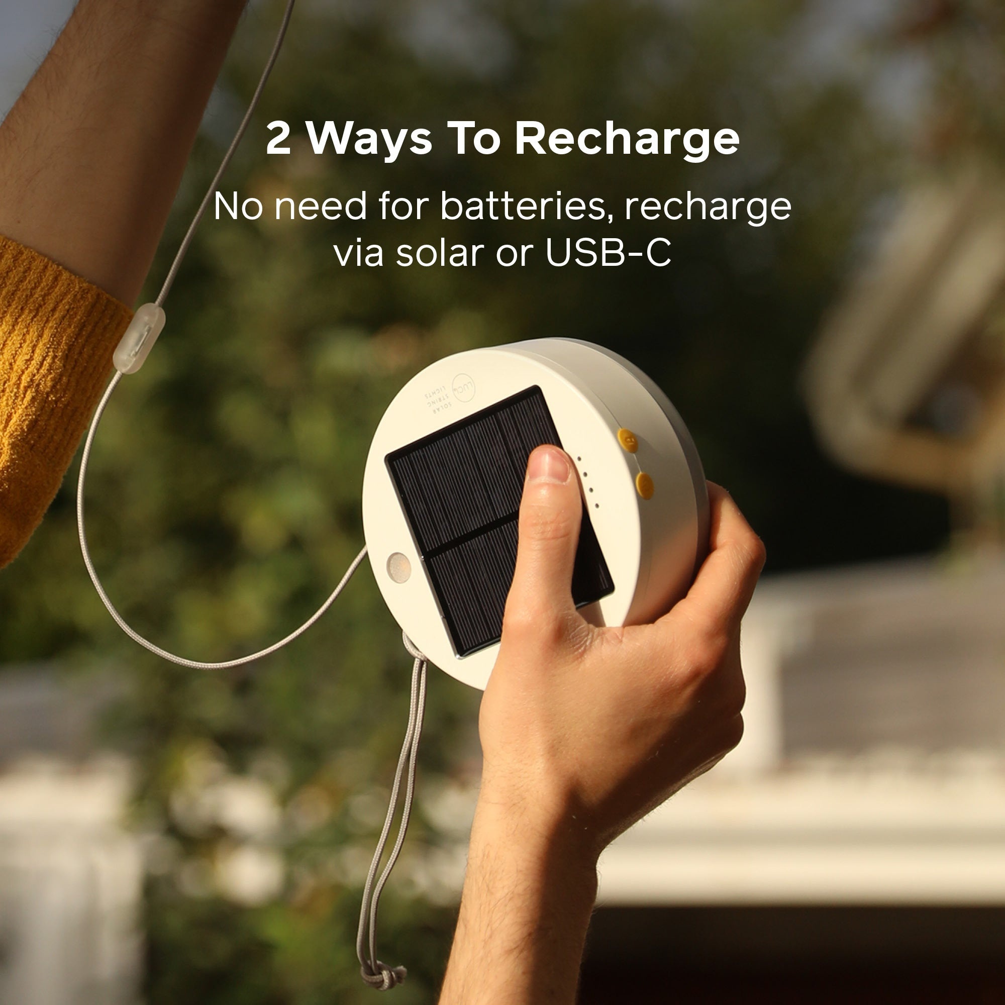 With 6 unique color modes shining across an 18 ft (5.5 m) nylon-braided cord, Solar String 18’ Color transforms your surroundings at the click of a button. Featuring 20 RGB LEDs integrated into 10 shatterproof bulbs, you can switch between colors, or simply select the color-cycle mode and let Luci seamlessly change from one color to the next. Plus, with recharge-ability via solar or USB, these solar string lights are perfect for adding a splash of color to your space.