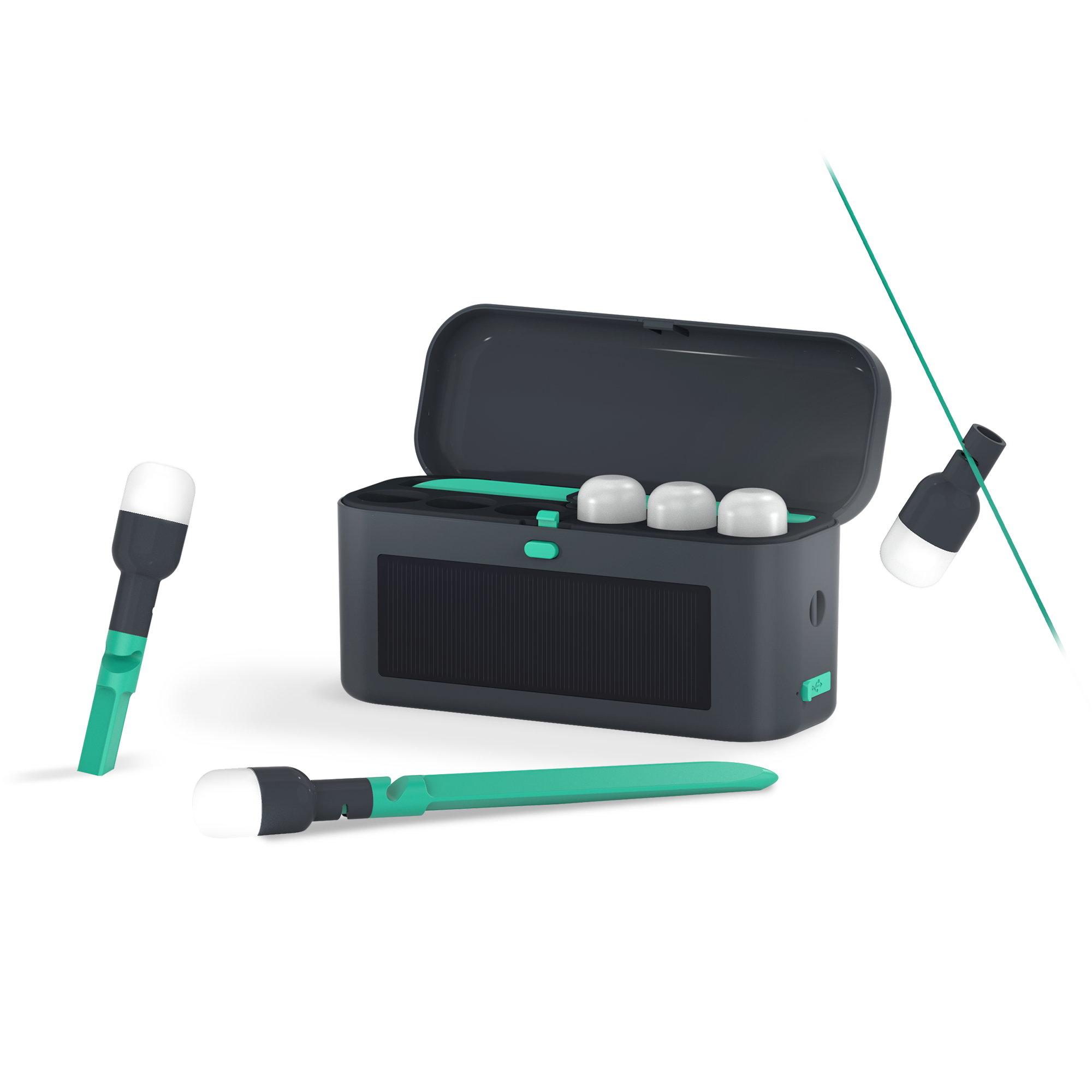 String, stake, or carry light wherever you need with Site Lights. Featuring 6 hangable lights, 6 ABS stakes, and 1 charging case for storage, Site Lights illuminate any scene for up to 20 hours on a single charge. Whether using the lights independently as overhead ambiance or connecting onto the stakes to form an illuminated tent peg, Site Lights are the perfect choice for making memories under the night sky.