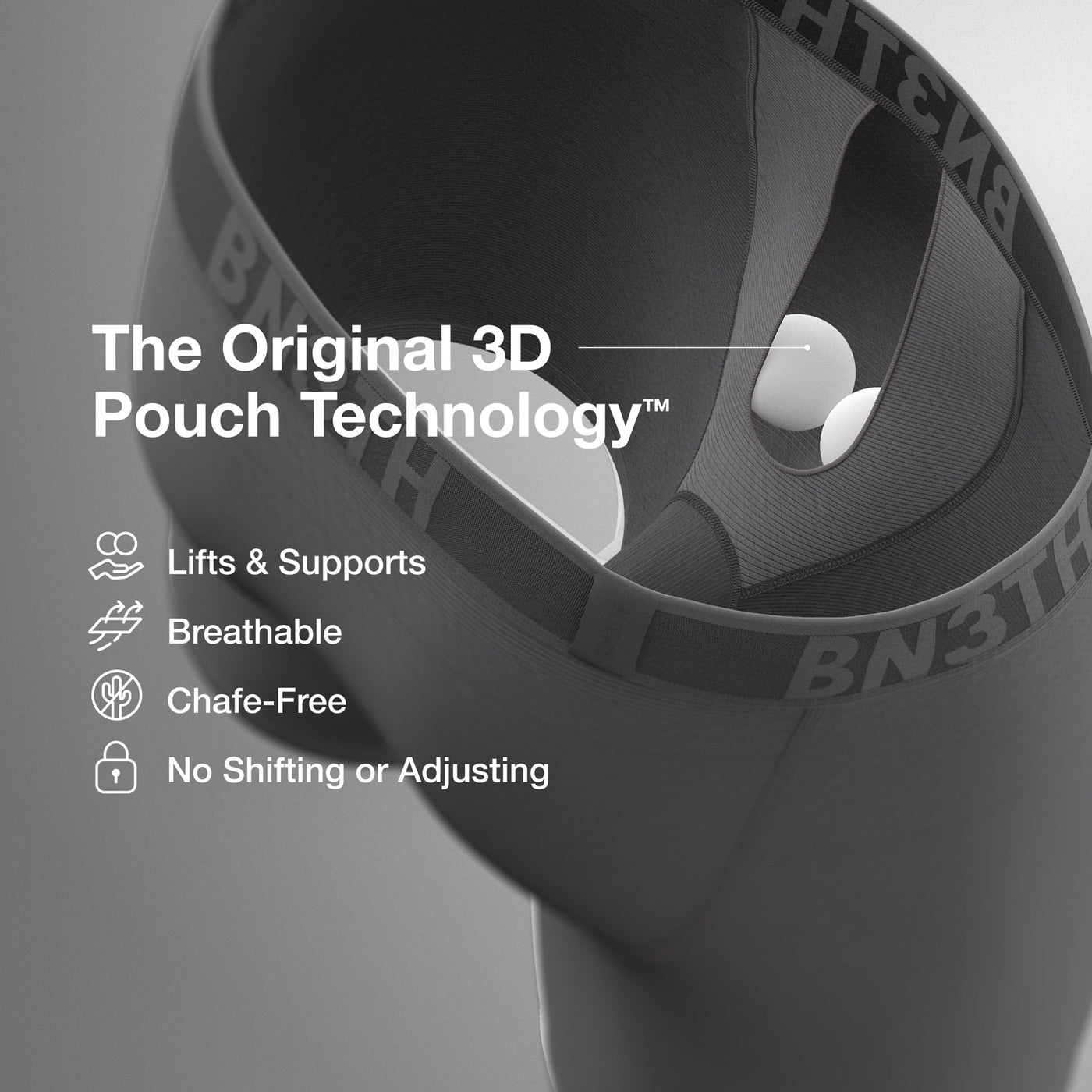 The Original 3D Pouch lifts and supports everything, eliminating the need to shift or adjust.