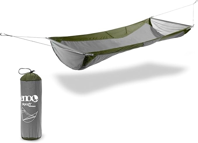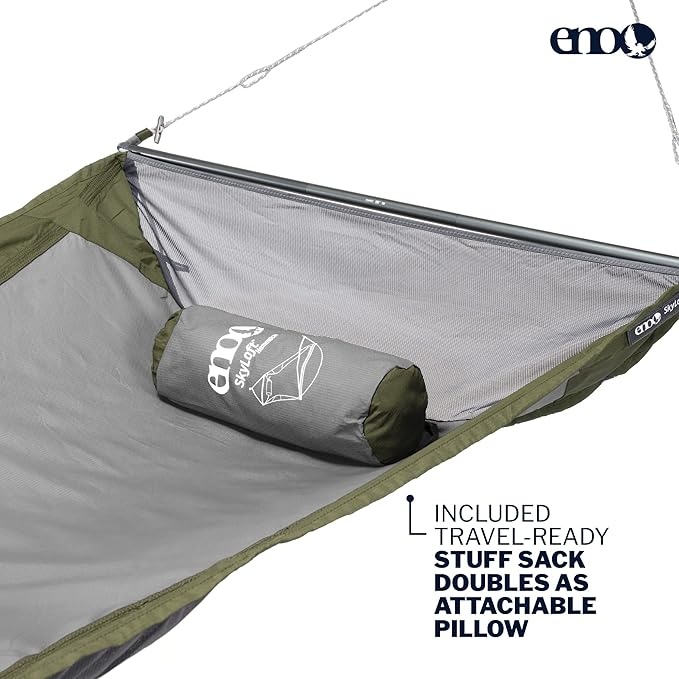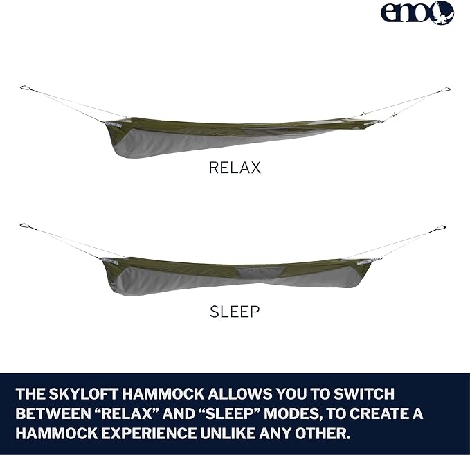 The SkyLoft makes stretching out and relaxing easy, and with its airy design and dual modes, you can sleep or relax at your own pace, day and night. Weighing in at just under 3 pounds, the SkyLoft is easy to set up and packs up light. Constructed from 140D Ripstop nylon, sturdy DAC aluminum and UHMWPE line + polyester cord, the SkyLoft is durable as can be and supports up to 250 pounds. Last but not least, the SkyLoft has 2 cargo pockets for stashing your essentials and the stuff sack doubles as an integrated pillow.