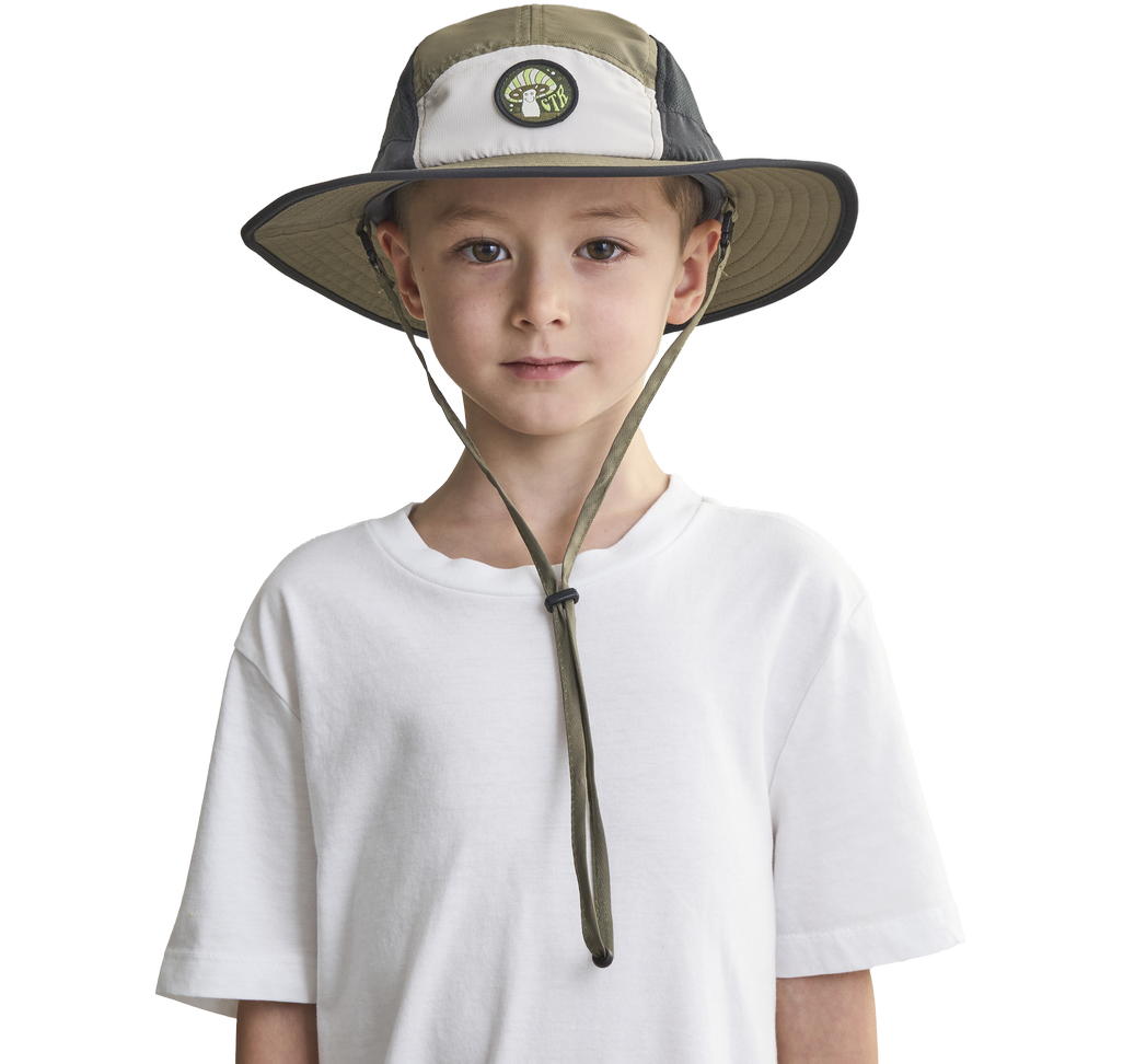 •Lightweight Kids Boonie•UPF 50+•Made from Recycled Polyester•Moisture wicking sweatband•6cm floatable brim•Ventilated mesh side panels•Child-safe adjustable + removable chin cord