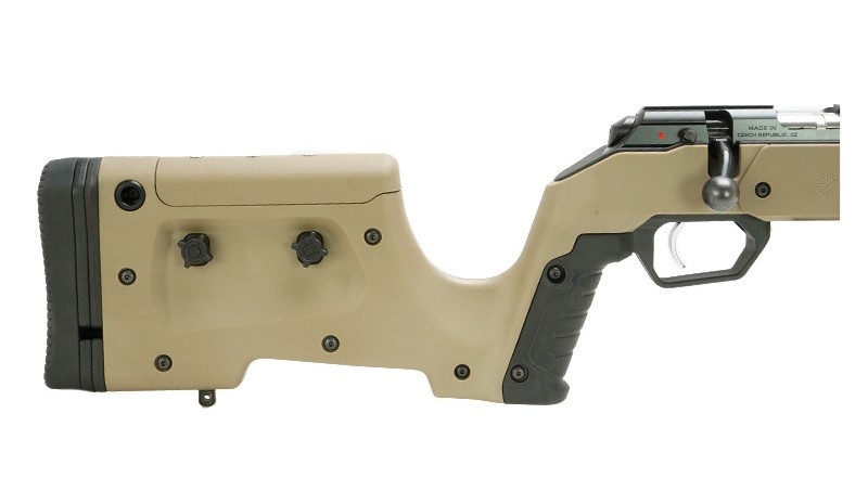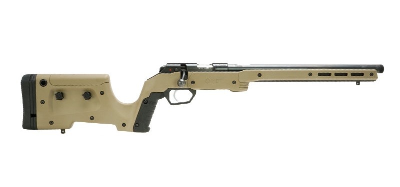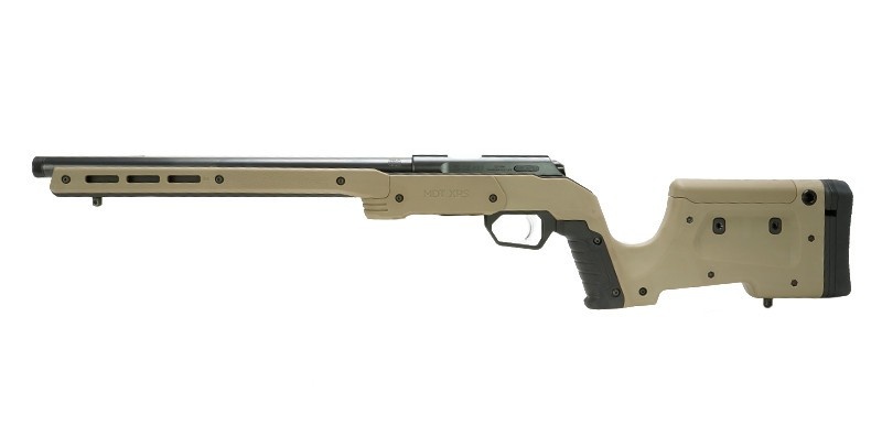The XRS features adjustable length of pull via spacers from 13.25” to 15+” and a quick adjust cheek piece to adjust for scope height over bore. The XRS accepts standard AICS pattern magazines and has an easy to manipulate ambidextrous magazine latch. The generous 12” long Forend comes with M-LOK slots built in for accessory mounting and attachment of ARCA or picatinny rails.