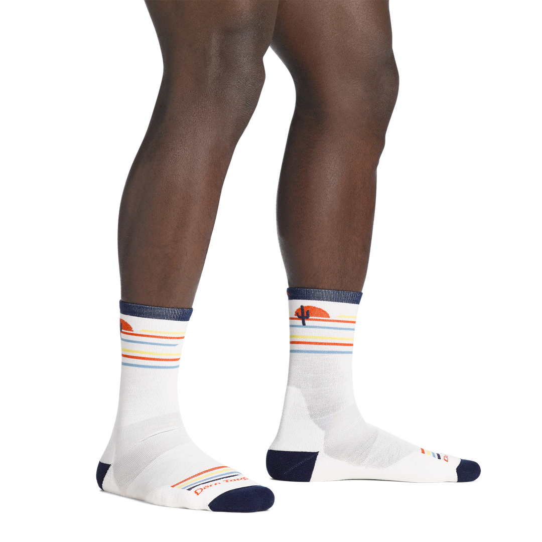 Settle any coyote schemes with the best in Merino Wool performance and a look that’s sure to turn heads on the trail or around the city. Built with arch support and Ultra-Lightweight cushioning underneath, breathable venting and targeted flex up top, the Men’s Frontrunner run sock’s supple Micro Crew ribbing stays put no matter how many speed limits you’re flexing.