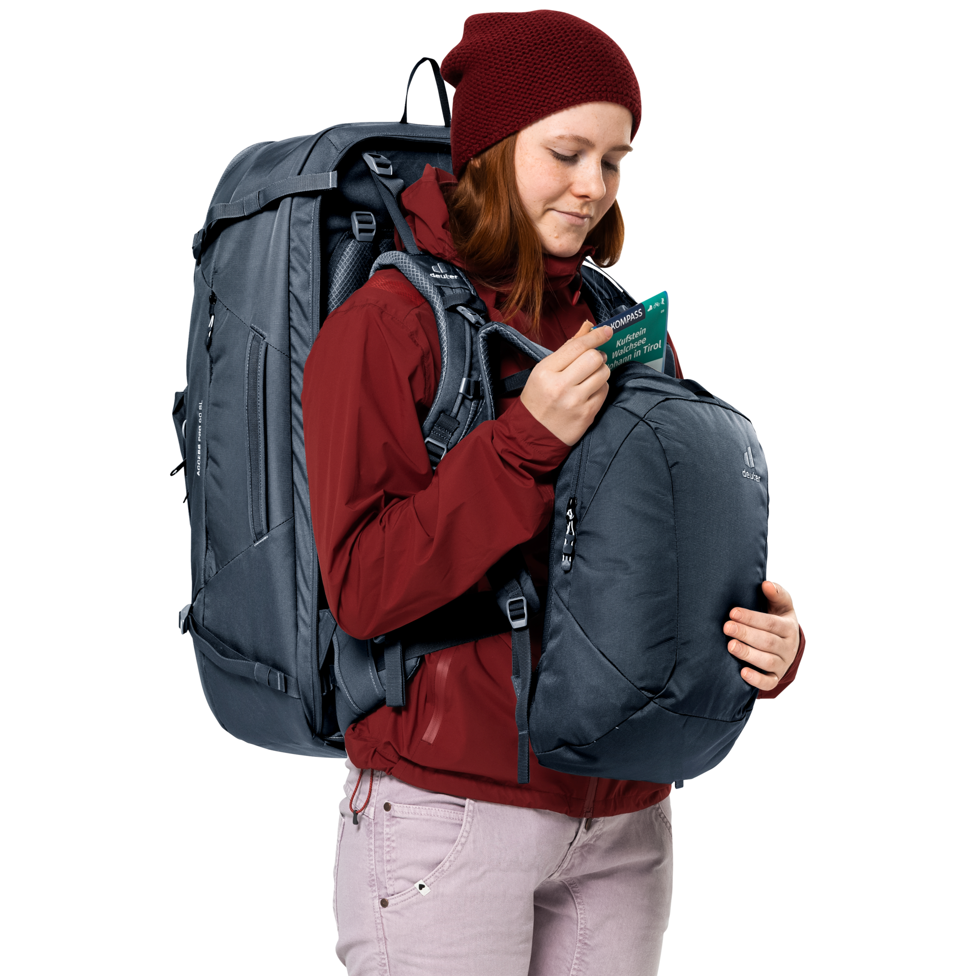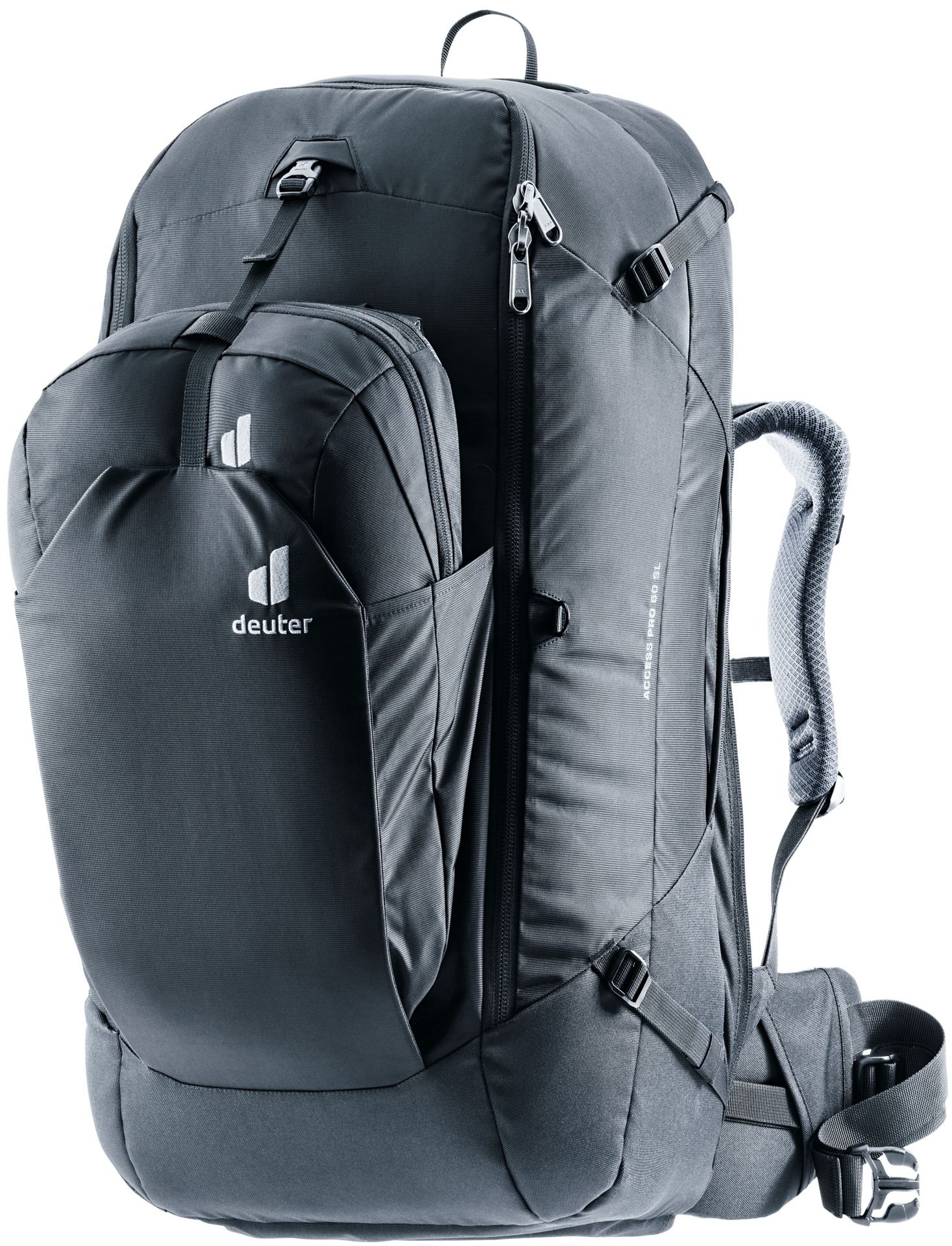 A bluesign® accredited product, this tough, sustainable pack is made from 100% recycled body fabric and features the deuter Contact back system for maximum carrying comfort. With a secure, lockable zipper on the main compartment, cleverly positioned compartments, and a removable shoe bag, this is a must-have piece of gear for world travelers. Including a day pack with padded back panel that can be worn on the front, clipped to the main pack's shoulder straps to keep valuables close at hand.