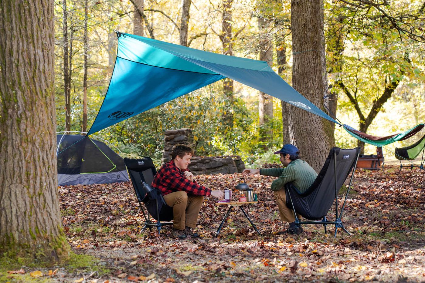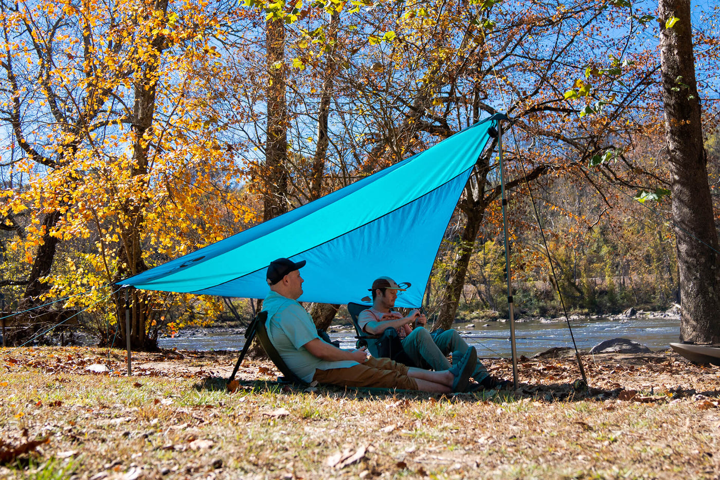 The SunFly creates shade and shelter above hammocks, chairs, and more. This adventure-ready canopy with optional ridgeline setup enables quick No-Knots-Needed protection from the elements with its UPF 30 sun protection and waterproof fabric.