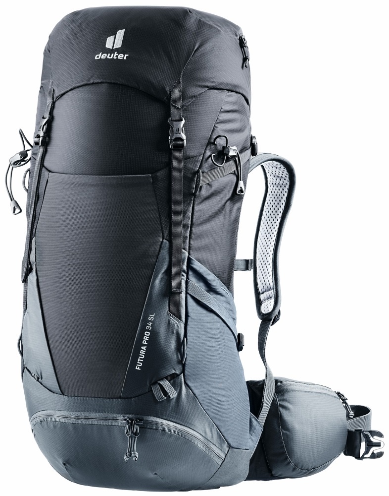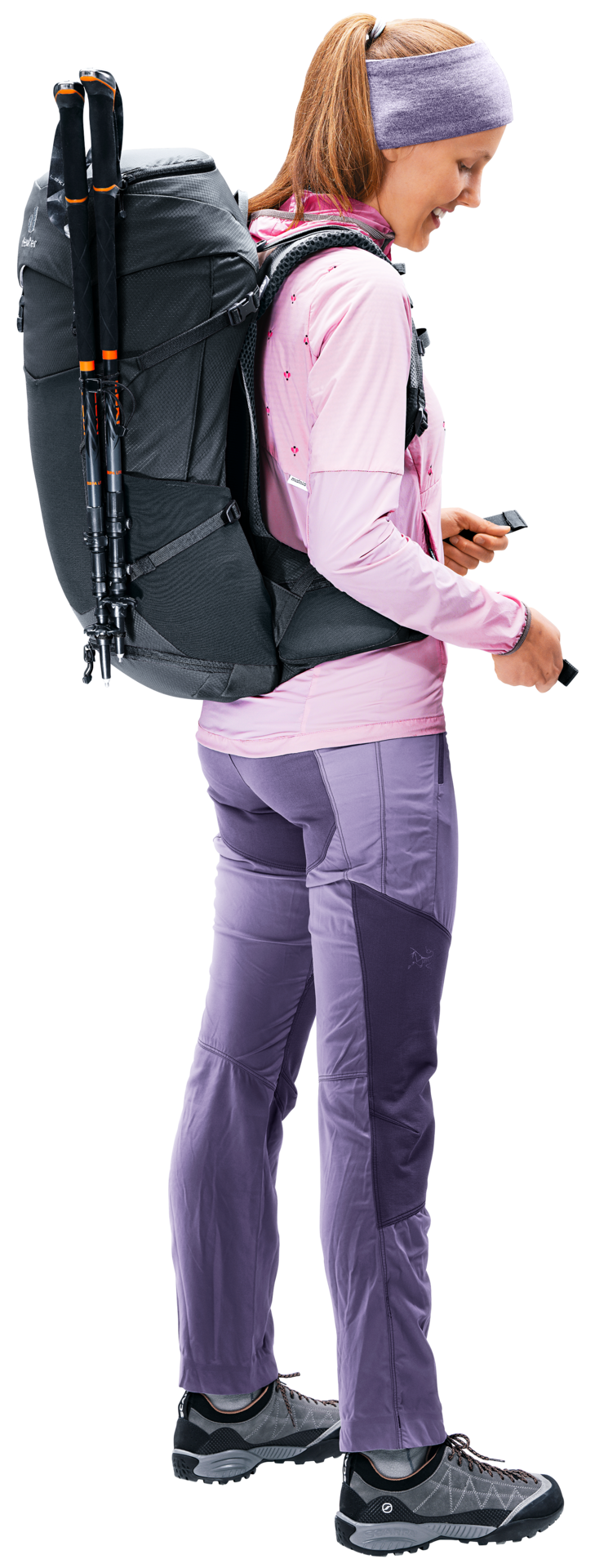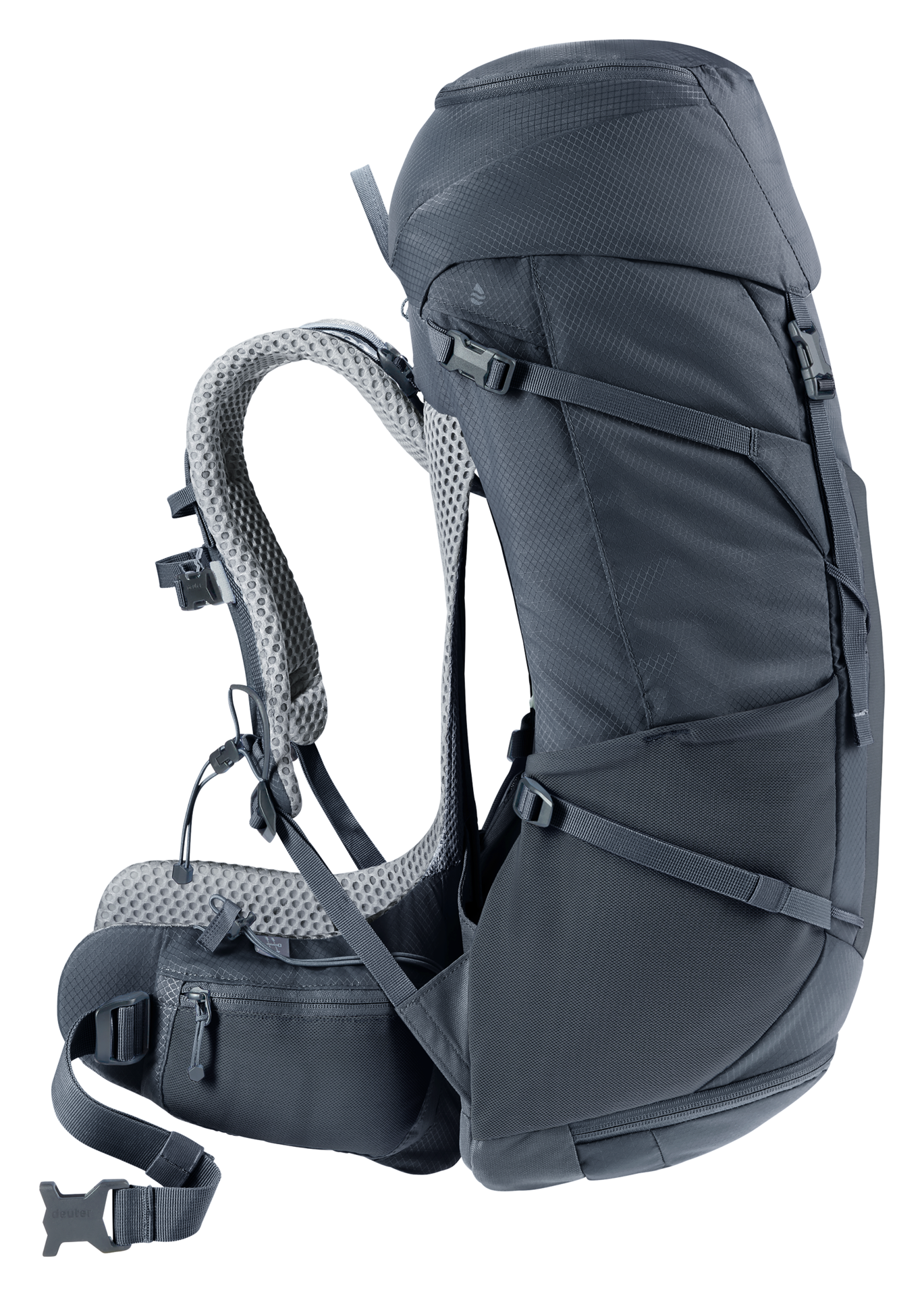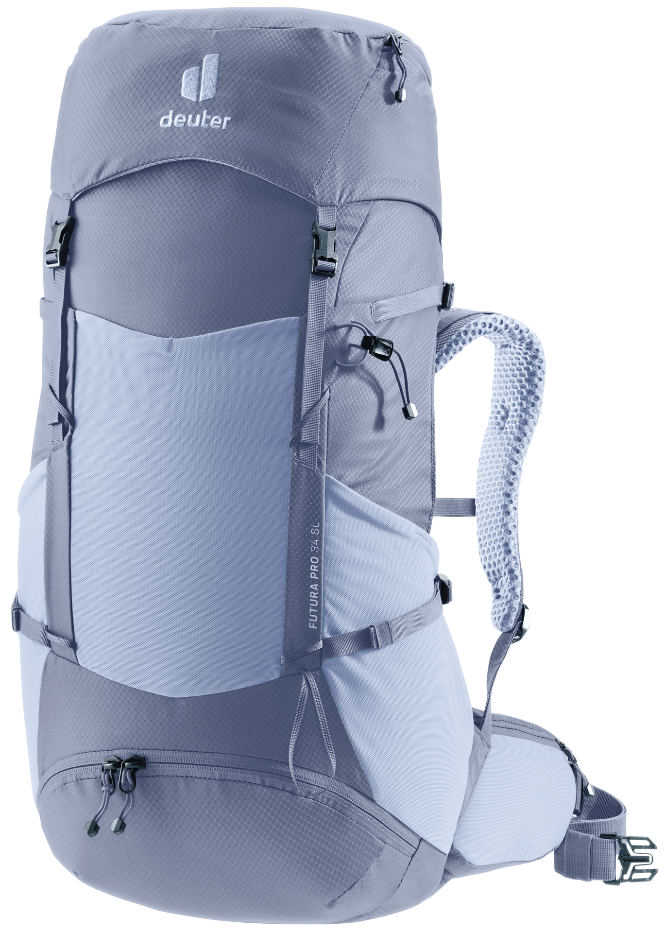 The Futura Pro, thought out in every detail, was developed for multi-day tours where comfort must not be lacking. The hiking backpack therefore has the ergonomic Aircomfort Sensic Pro mesh back system. This provides maximum back ventilation due to the innovative mesh. In addition, the moveable VariFlex ECL hip fins with ergonomic padded inserts allow energy-saving carrying. Thanks to the clear division of the compartments, items can be stored easily and effectively in the lid compartment, in side bellows pockets, in the separate bottom compartment and in the spacious main compartment.