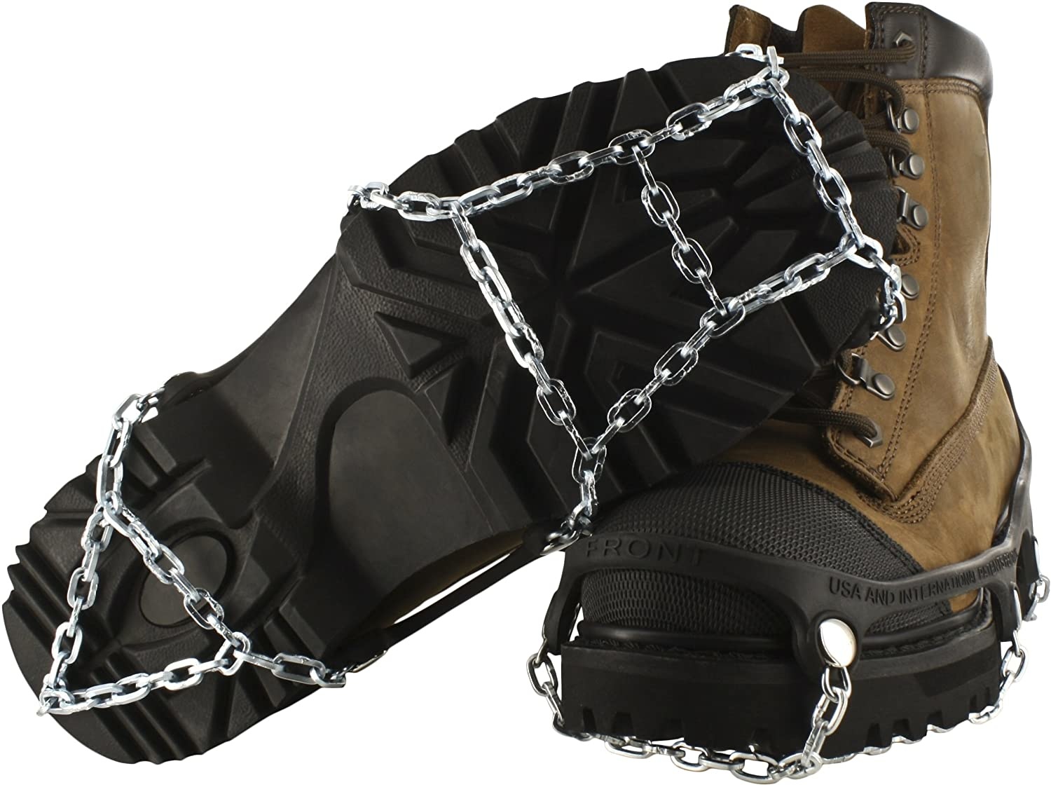 Think of ICEtrekkers chains as tire chains for your feet, perfect for all ice and snow conditions. Chains can be used on a variety of footwear and are comfortable for extended wear. The new square links are individually TIG welded and made from case-hardened steel, enhancing traction on ice while still providing dependable traction on snow. The durable rubber sling is flexible in sub-zero temperatures and stays securely on footwear even in deep snow. ICEtrekkers chains are a great value, offering durable traction at an affordable price.