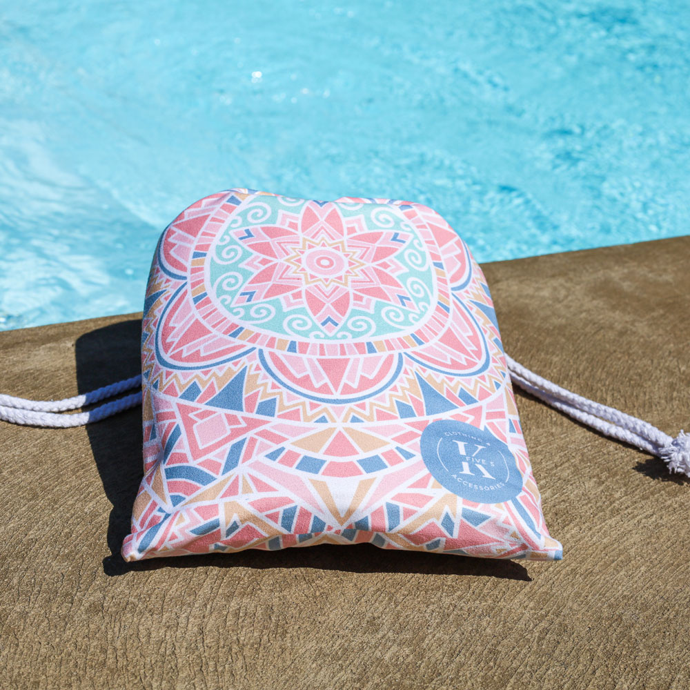 Microfibre material: Very absorbent, it dries quickly (15 minutes in the sun and 1 hour in the open air), is soft to the touch and does not stick to sand, making it an ideal choice for the beach.