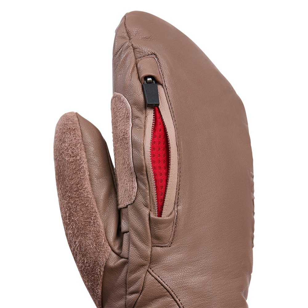 Meet the Aspen: waterproof leather mittens with a side pocket and extra finger lining for premium warmth.