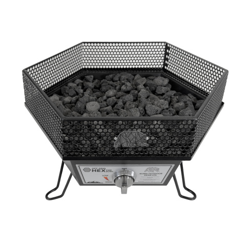 ·› 19” Hexagonal shape·› 3 collapsible legs·› Black lava rock·› Lid with strap included·› 10 foot hose for propane tank·› 58,000 BTU’s·› Includes carry bag