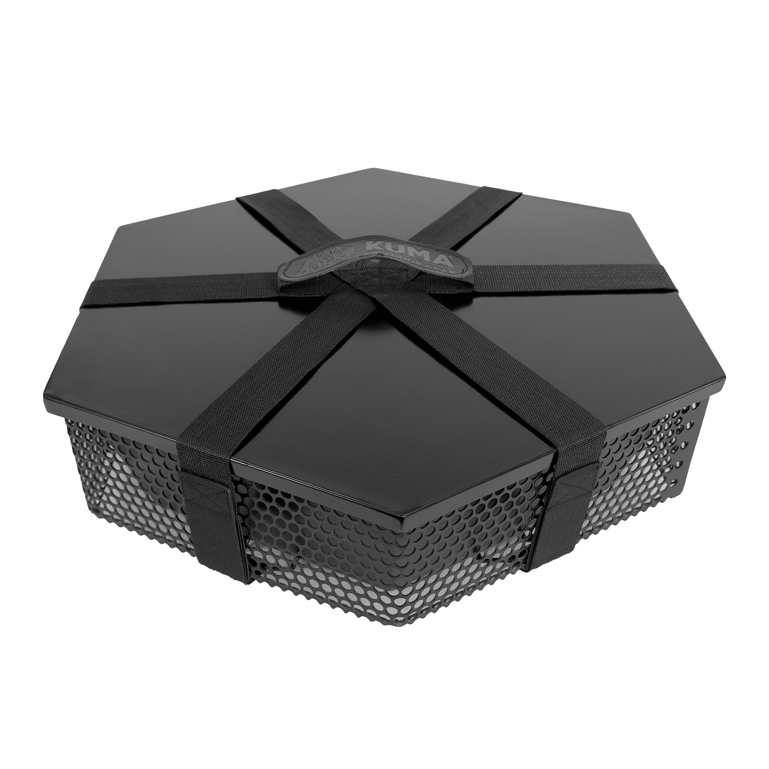 The Off-Grid Hex Fire bowl is a compact and lightweight 19" hexagonal fire pit with 3 foldable legs, perfect for outdoor adventures.