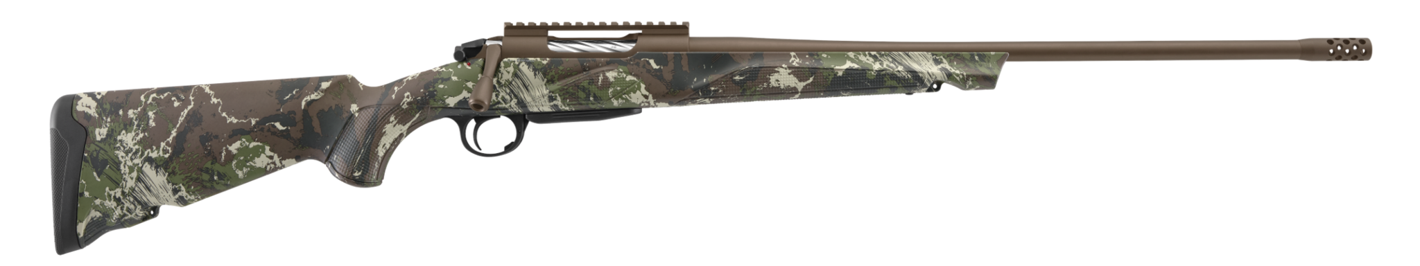 Built for serious hunters, it features an ergonomic stock, detachable box magazine, muzzle brake, and a one-piece Picatinny rail for optics.