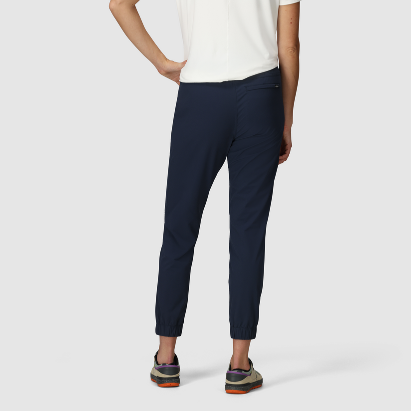 Our Ferrosi materials are made from a bluesign® approved recycled nylon blend that's lightweight, breathable, quick-drying, durable, and weather-resistant. Ample pockets, a harness-compatible waist, and articulated knees are tailor-fit for multi-pitch climbs, long approaches, or working hard in the gym. This updated jogger style adds a faux fly, an elastic waist with exterior drawcord, a tapered calf with inner ankle elastic, and a gusseted crotch for mobility with every stride.