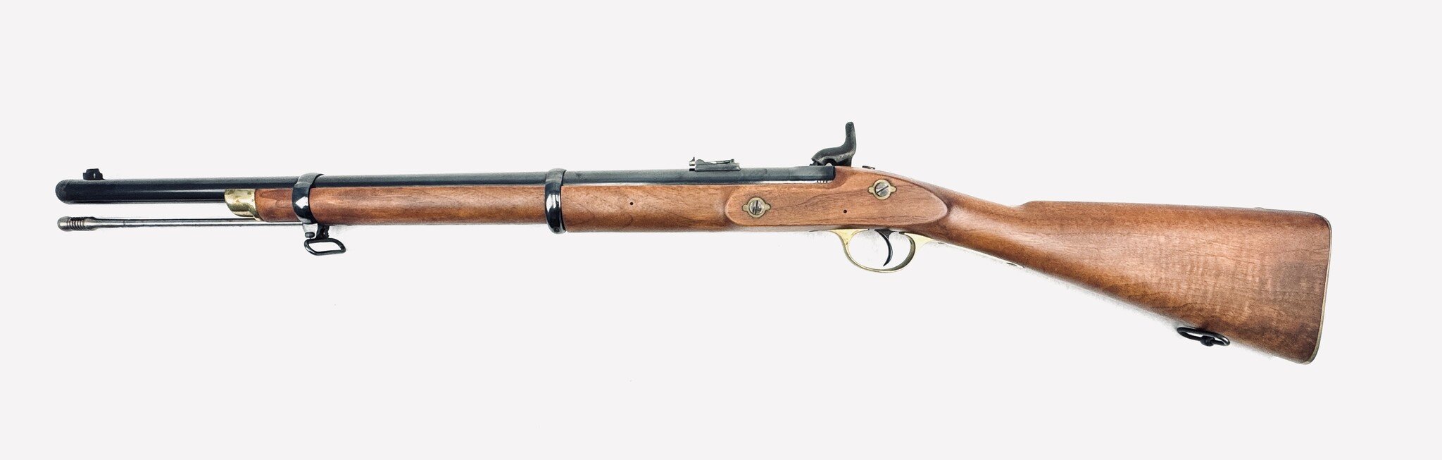 This weapon is often referred to as a musketoon but due to it having a rifled barrel is more accurately known as a carbine.