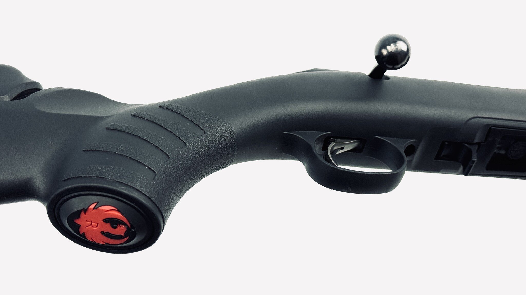 It's hard to pick up the Walking Varminter without appreciating the way it points and handles. The textured pistol grip is narrow, but the hand naturally comes to position. The finger groove on the fore-end makes it easy to grip and steady the rifle, and the 22-inch, heavy sporter barrel gives this rifle a natural, between-the-hands balance.