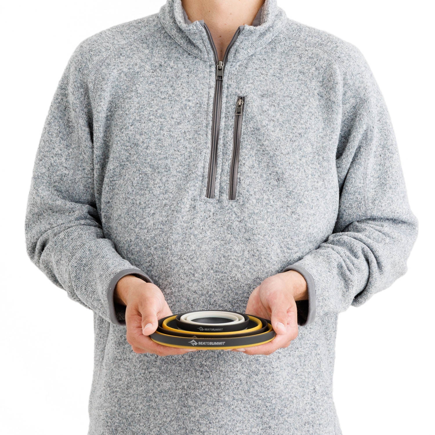 Designed to nest together, the Large Bowl, Medium Bowl and Cup collapse down to take up hardly any room in your backpack - and the new lightweight construction means that they won't add much weight to your pack, either. Despite having shed grams, functionality has been improved. Each bowl now has a rim so you can hold it securely and a curve between the base and sidewalls that matches Sea to Summit spoons. The Cup has a central ring in addition to the upper rim to make it easier to grip. And - coming from the pioneer in collapsible camp dinnerware, you know you can rely on premium, EU food grade materials.