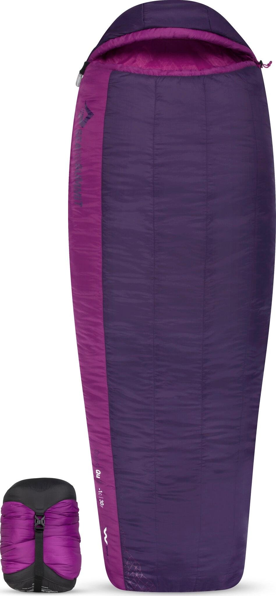 The Quest women's synthetic mummy sleeping bag is a great value option for weekend warriors and new campers.Entry-level doesn't mean we've cut corners on comfort and versatility. Like all Sea to Summit synthetic mummy sleeping bags, the Quest utilizes WaveLoft construction to allow the insulation to expand out into air-trapping curves for maximum warmth. As the temperature rises, the full-length zipper(which curves around through the foot box)allows you to sequentially increase ventilation to the point where the sleeping bag can be opened flat and used as a quilt. The broader mummy cut of the Quest gives women more room to move and allows a natural sleeping position.Features• WaveLoft construction for improved air-trapping for maximum warmth• Quality DWR-treated nylon shell material helps repel external moisture• Comfortable 20D nylon liner fabric• Includes stuff sack• Full-length Ykk® #5 main side zip extends through the foot box zip for increased ventilation and allows the bag to be used as a comforterMaterials• Shell Fabric: 30D nylon treated with DWR• Insulation: Polyester(using WaveLoft™ construction)Specifications• Best Use: Backpacking• Shape: Relaxed Mummy• Zip Options: Full length left side zipper with two sliders. Unzip fully to use as a quilt or comforter• Bag Series: Regular/Long: Quest 2• Bag Weight: Regular: 2lbs 15.3oz, 1340g/Long: 3lbs 4.6oz, 1490g• Compressed Vol(ASTM Standard): Regular: 9.8L/Long: 11.2L• Compression Sack: Regular: L-20L to 6.5L/Long: XL-30L to 10L• Fits Up To Height: Regular: 5ft 7in, 170cm/Long: 5ft 10in, 179cm• Season Rating: Regular/Long: 2.5 Season• Stuff Sack Size: Regular: L-15L/Long: XL-20LTemperature• Women's Temp Rating(EN Comfort): Regular/Long: 30°F/-1°C