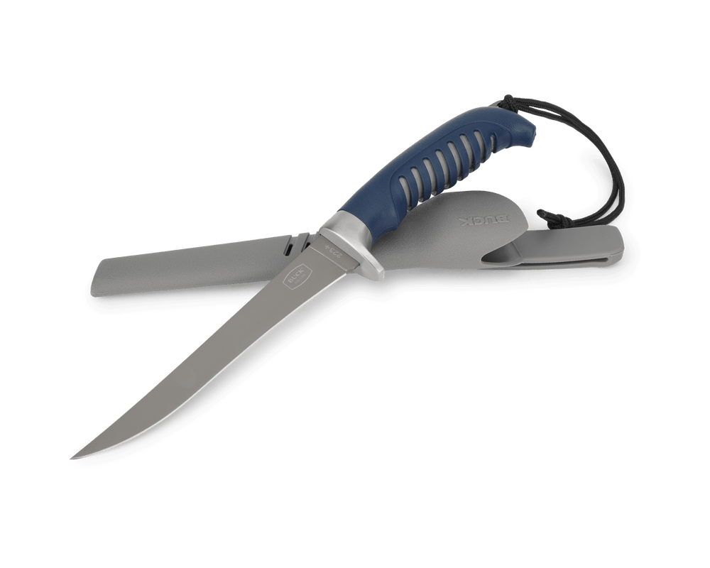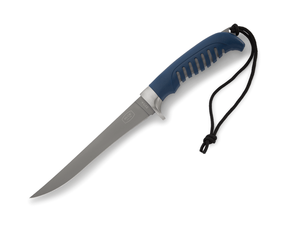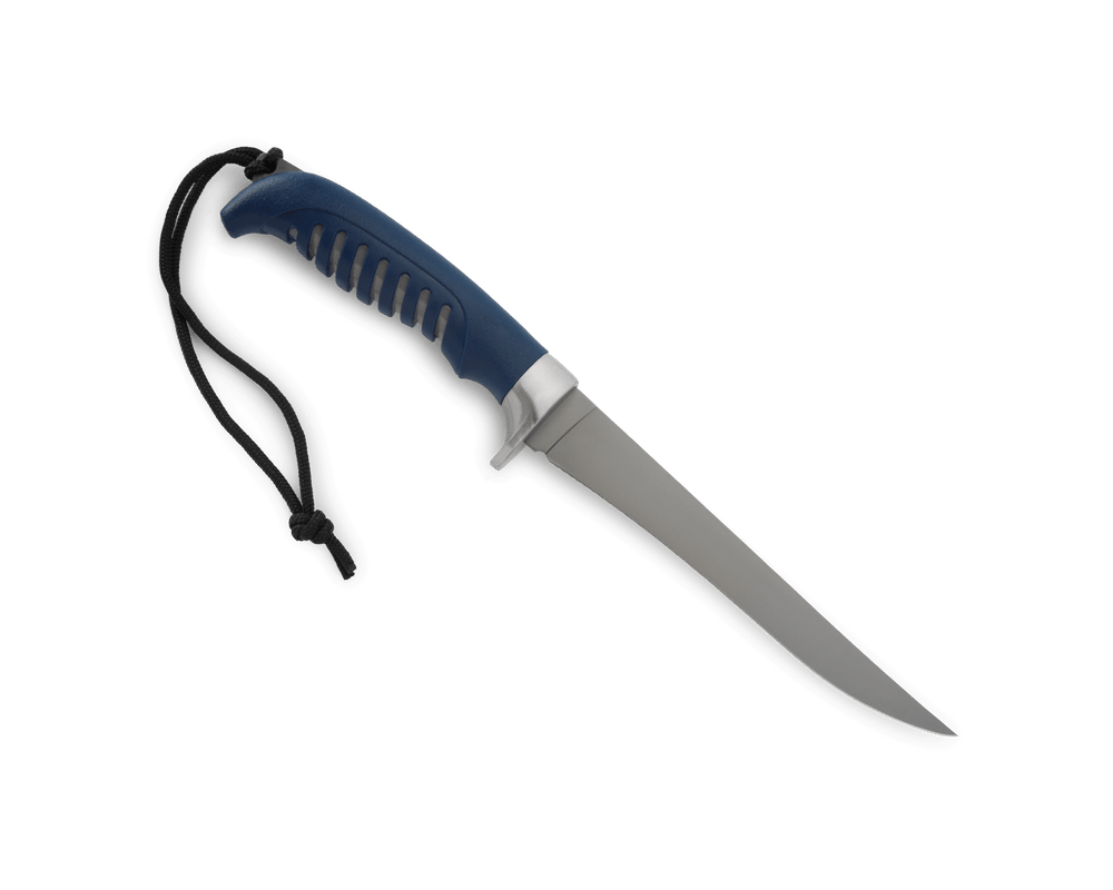Safe, reliable and durable. This medium sized fillet knife has a titanium coated blade and is designed for added flexibility and corrosion resistance, a rubberized anti-slip grip and a stainless steel safety guard.