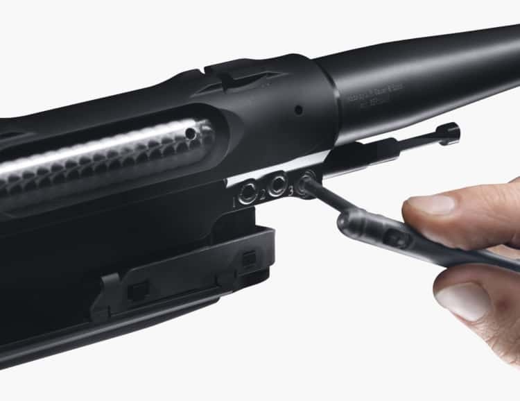 The S 404 Synchro XTC perfectly shows how timeless gun making with cutting-edge materials is done. It is a lightweight, high-end bolt-action rifle celebrated for its modularity, precision, and striking carbon fiber thumbhole stock.