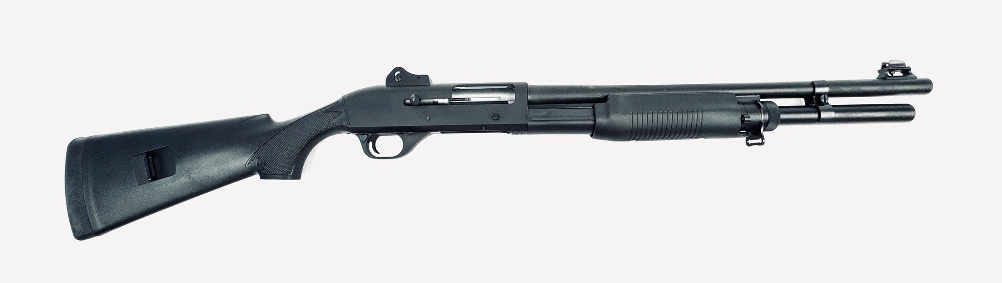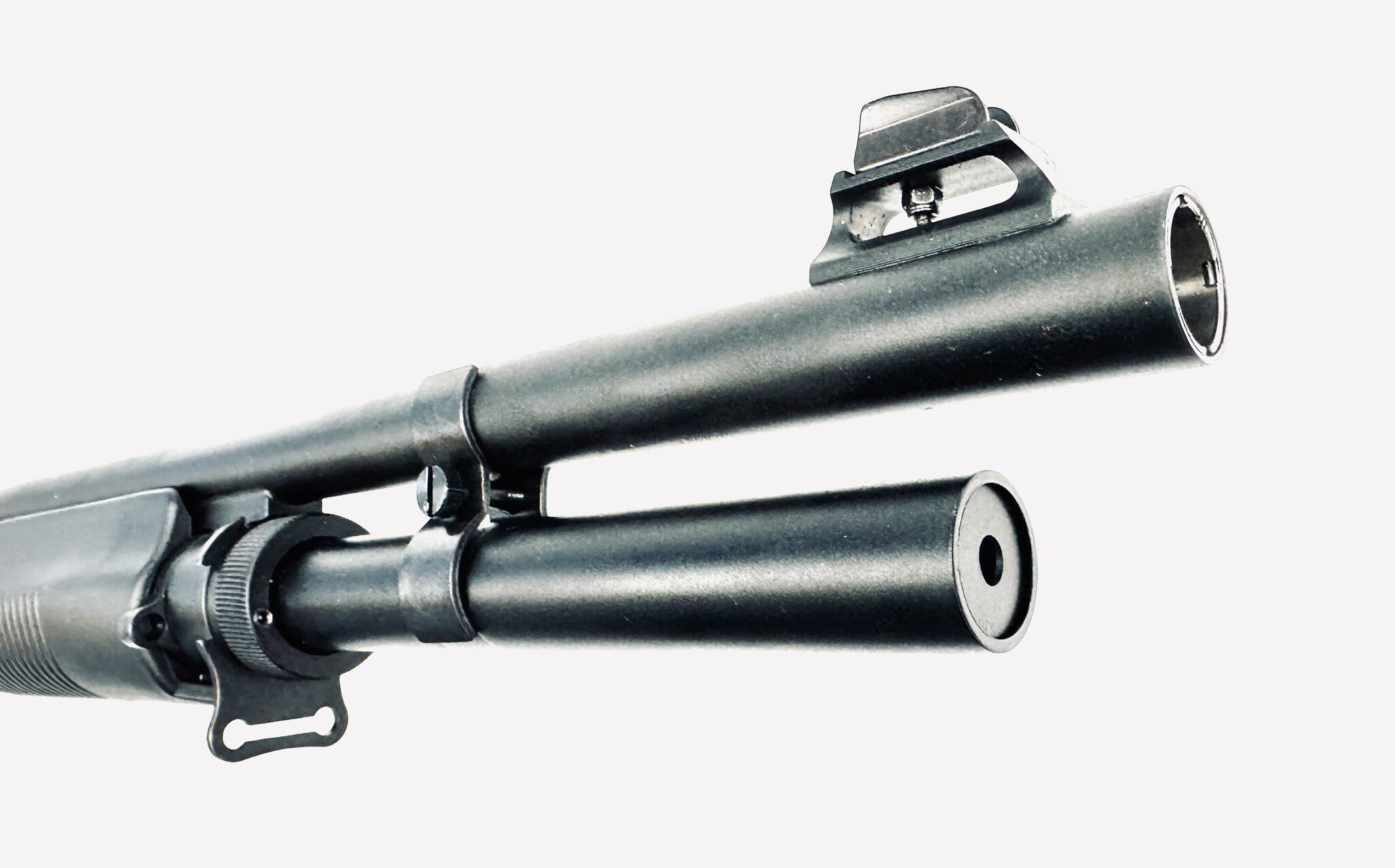 The TAC-12 “M3 Super 90” is a dual-mode semi-automatic and pump action 12GA shotgun. It can be quickly converted from autoloading to pump by simply turning a spring loaded ring located on the end of the forearm.