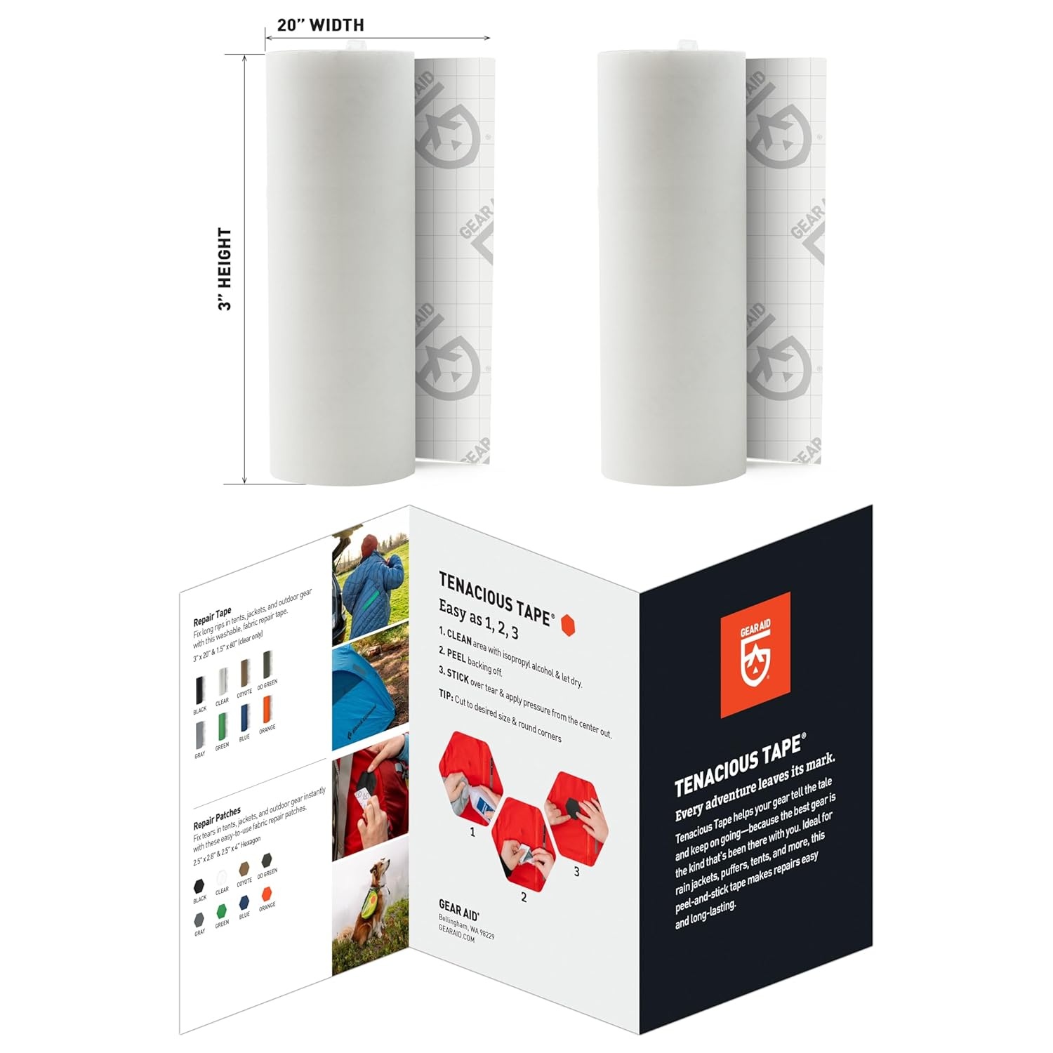 Quick & Easy Repair Solution: Tenacious Tape's 3"x20" repair tape is ideal for on-the-spot repairs of outdoor gear.