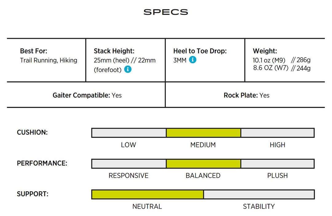 Make rocky, technical trails your own with the new Terraventure 4. The latest update to our trail running workhorse perfectly combines a fast and nimble ride with rugged protection, so nothing on the trail gets in your way. Retaining the same highly-praised moderately cushioned platform, forefoot rock plate, and Vibram® Megagrip outsole, Terraventure 4 is built to keep you feeling confident and moving freely on even the toughest of trails.