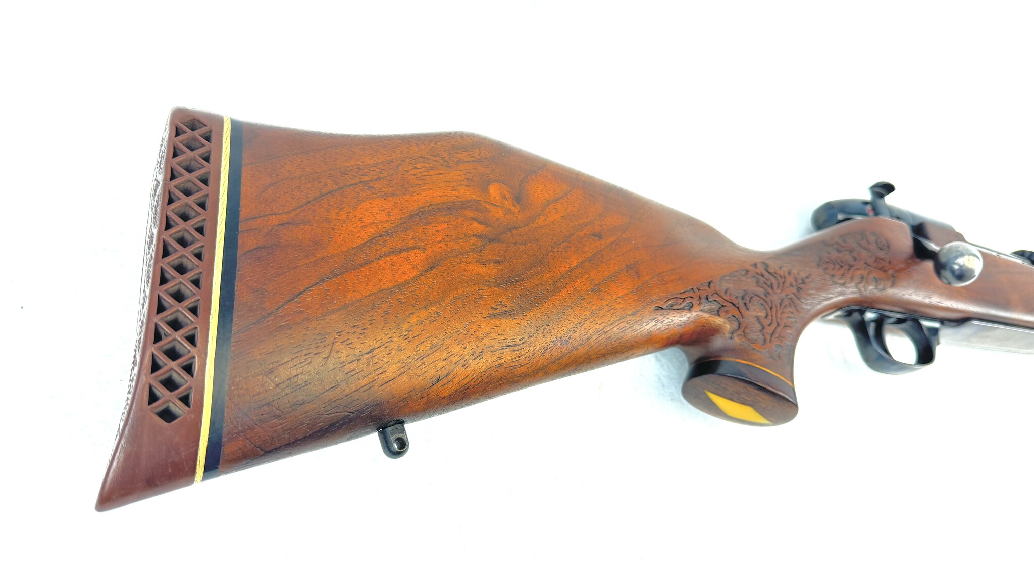 You can call me a traditionalist but don’t you dare say I’m old-fashioned. For beneath my hand-selected Claro walnut, Rosewood caps, Maple spacers and classic blue steel beats a heart infused with today’s Weatherby technology – right down to my precise machining, LXX™ Trigger and Pachmayr Decelerator recoil pad. On top of it all, laser-carved oak leaf engraving gives me sophisticated, yet traditional styling.